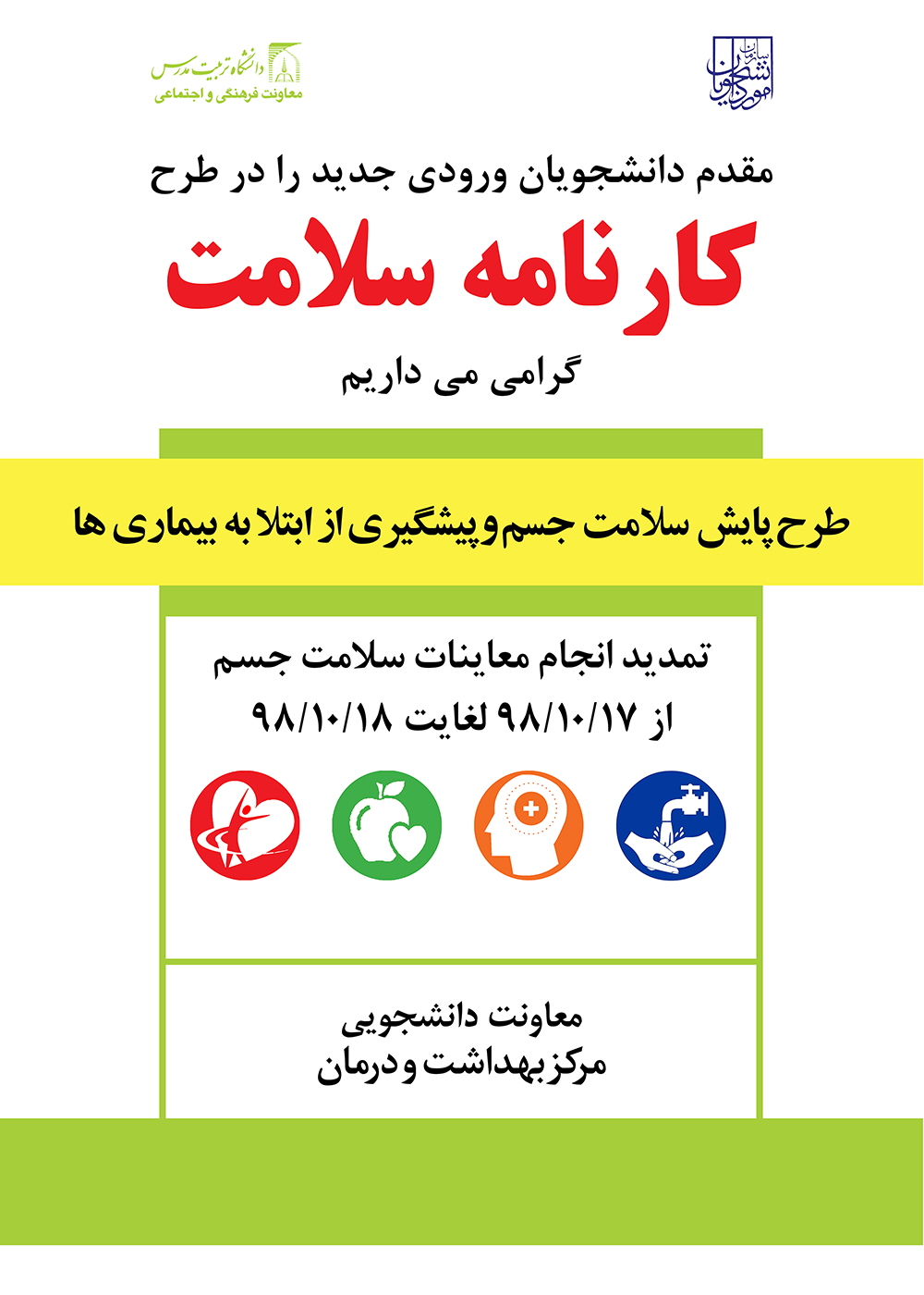 اطلاعیه مرکز بهداشت و درمان در خصوص تمدید طرح پایش سلامت جسم دانشجویان جدیدالورود