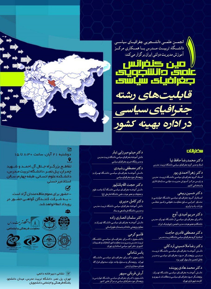 کنفرانس علمی دانشجویی جغرافیای سیاسی با موضوع قابلیت‌های رشته جغرافیای سیاسی در اداره بهینه کشور برگزار می‌شود.
